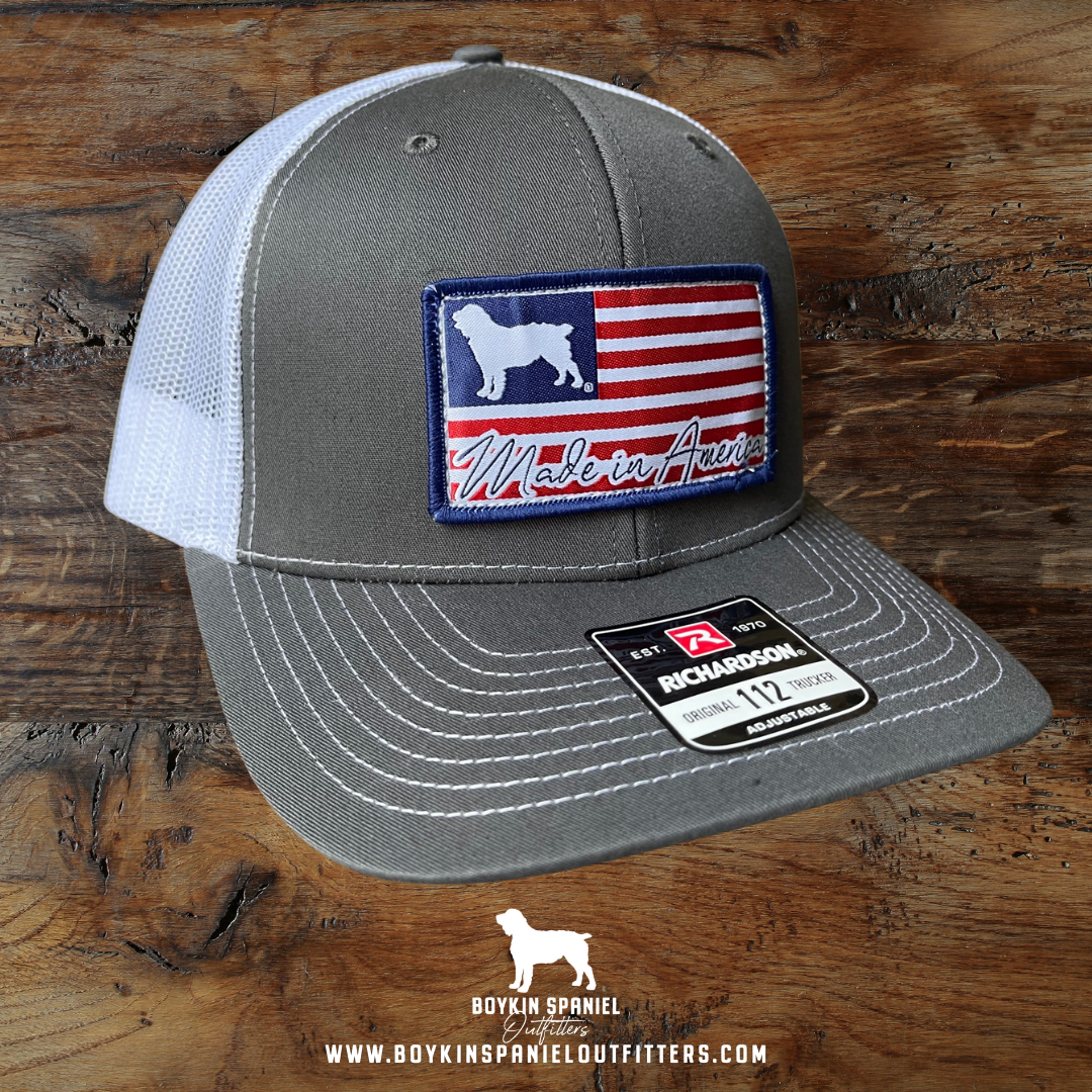112 Classic Trucker Cap - American Boykin Flag Patch - Charcoal/White