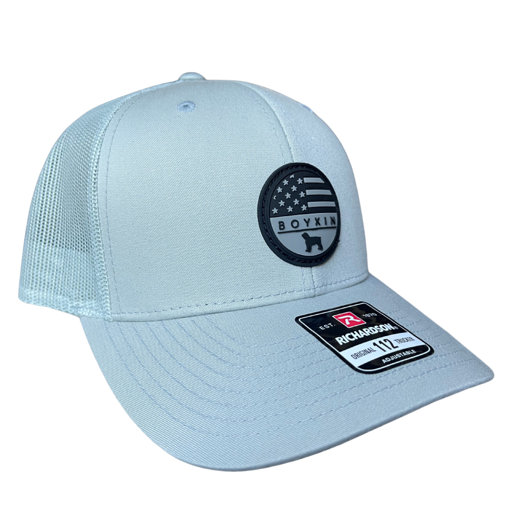 Our classic trucker cap is adorned with a silicone American flag patch featuring a Boykin Spaniel silhouette. Show your support of the country and the breed you love, in style!