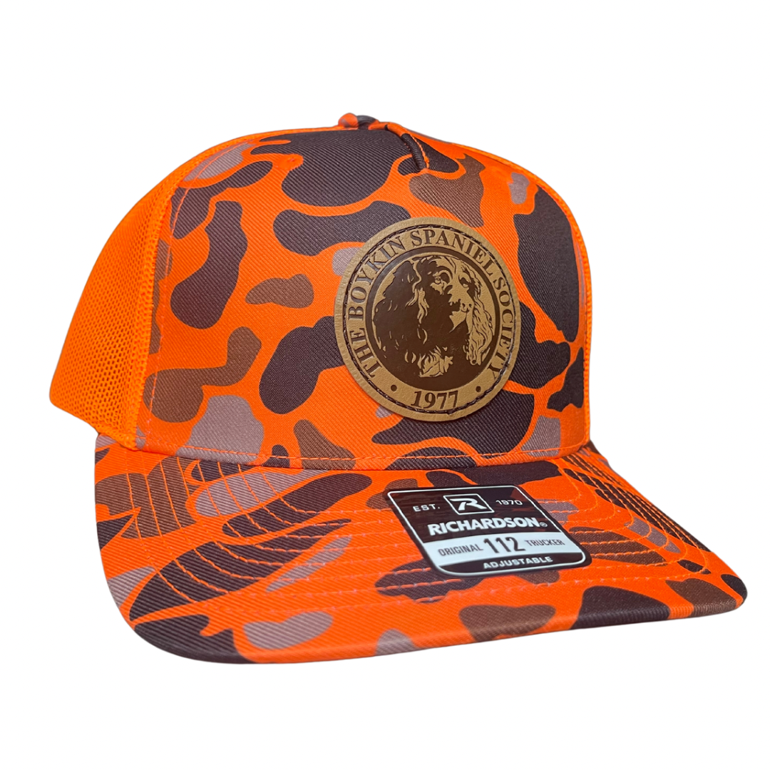 112 Printed Five Panel Trucker Blaze Duck Camo - Boykin Spaniel Society Leather Patch