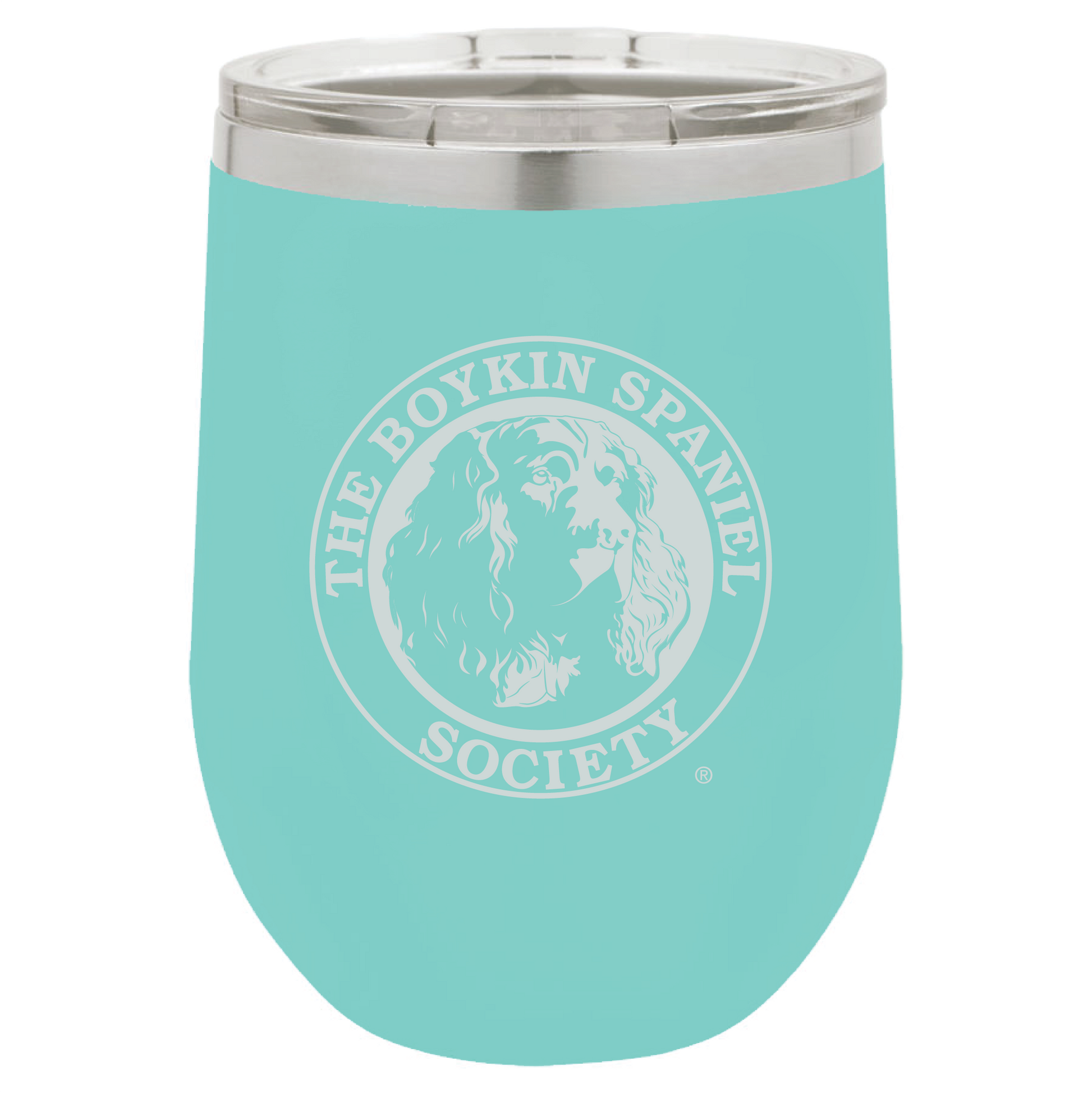 12 oz Stemless Wine Tumbler - Boykin Spaniel Society Official Seal Engraved (2 colors)