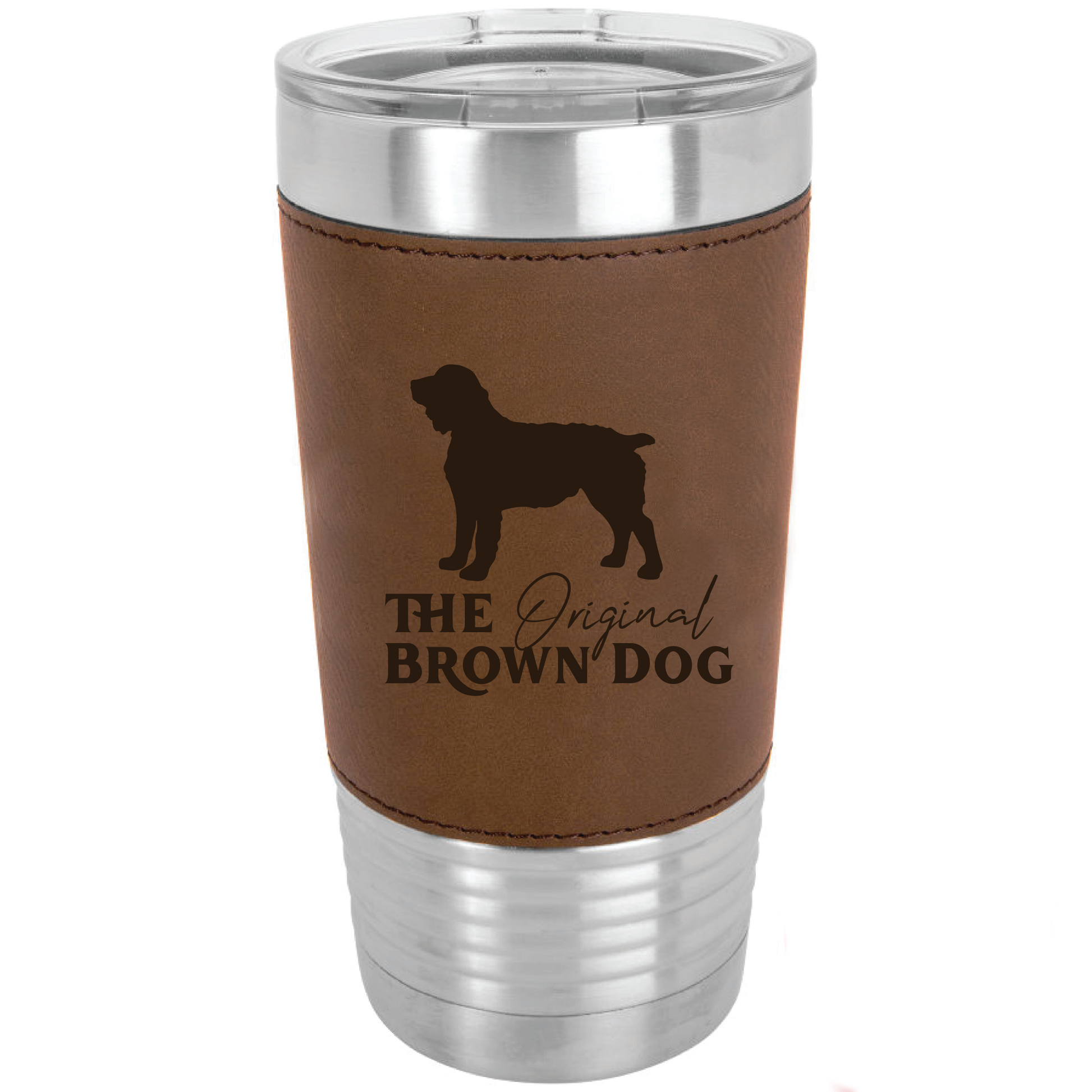 20 oz Tumbler with Leather Accent - Boykin Spaniel Outfitters Original Brown Dog