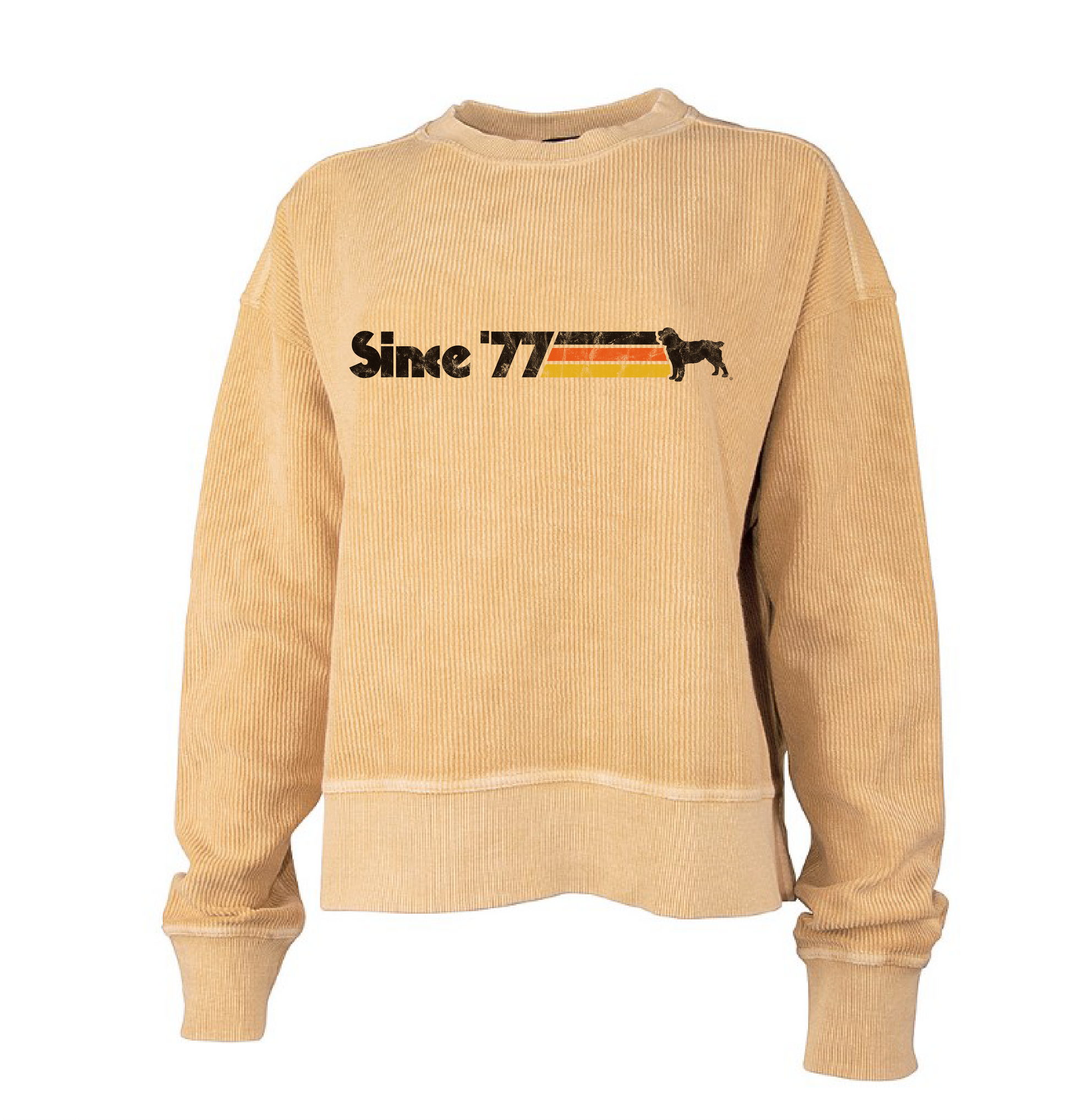 Share your love for the Boykin Spaniel with this retro-styled sweatshirt. The design celebrates the year the Boykin Spaniel Society was founded - 1977. This cropped sweatshirt is 100% corded cotton and features side slits for a relaxed hem opening.
