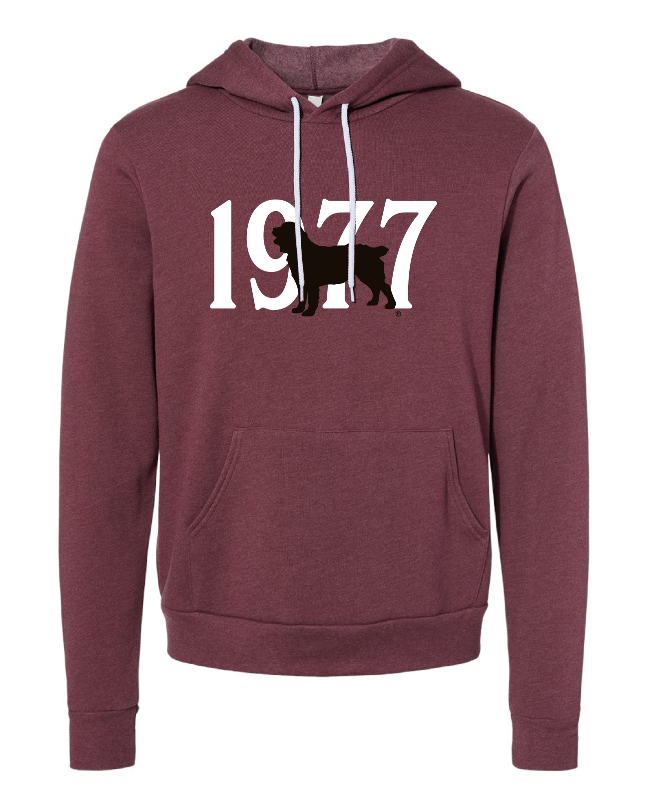 Celebrate the year the Boykin Spaniel Society was founded, and your love for the Original Brown Dog - the Boykin Spaniel. This vintage-style hoodie features the official Boykin Spaniel silhouette on a super soft ringspun cotton/polyester fleece blend. It features a white cord drawstring, unisex sizing, pouch pockets, and ribbed cuffs and waistband.