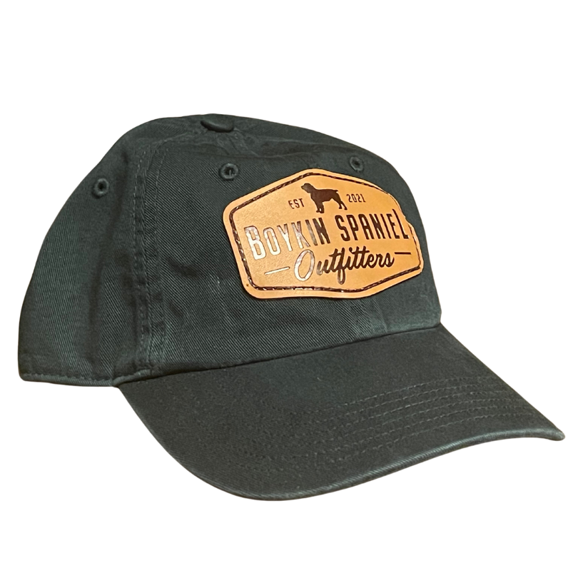 Show your love for the Boykin Spaniel in this dark green hat adorned with an leather Boykin Spaniel Outfitters patch.