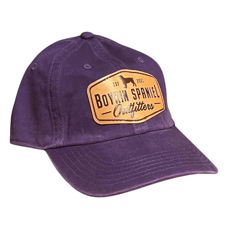 Show your love for the Boykin Spaniel in this dark green hat adorned with an leather Boykin Spaniel Outfitters patch.