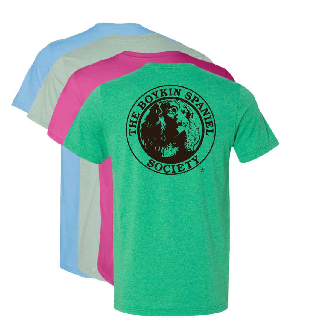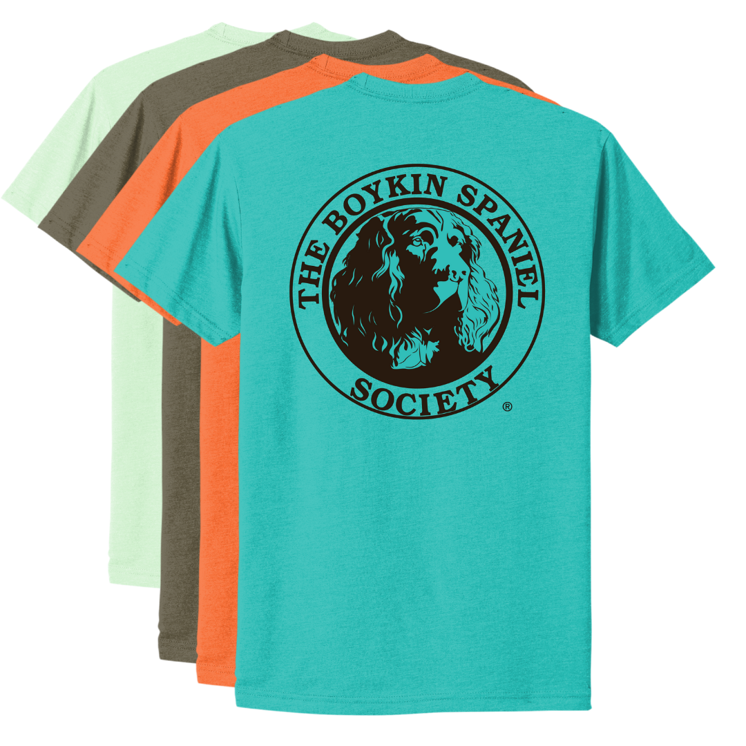 Share your love for the Boykin Spaniel and show your support for the Boykin Spaniel Society, with this super soft official seal t-shirt. Sale colors: Orange, Kelly Green, Tahiti, Mint
