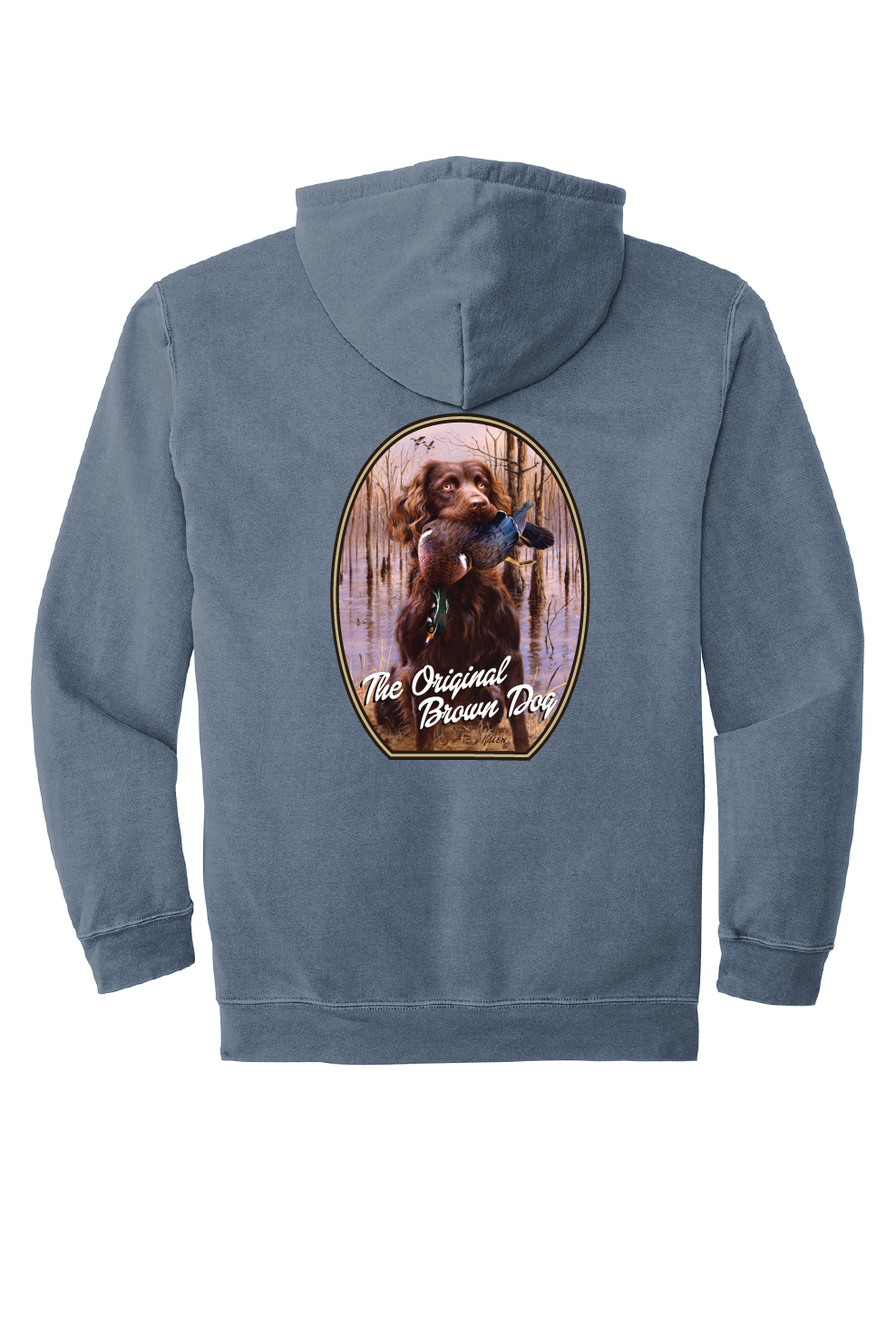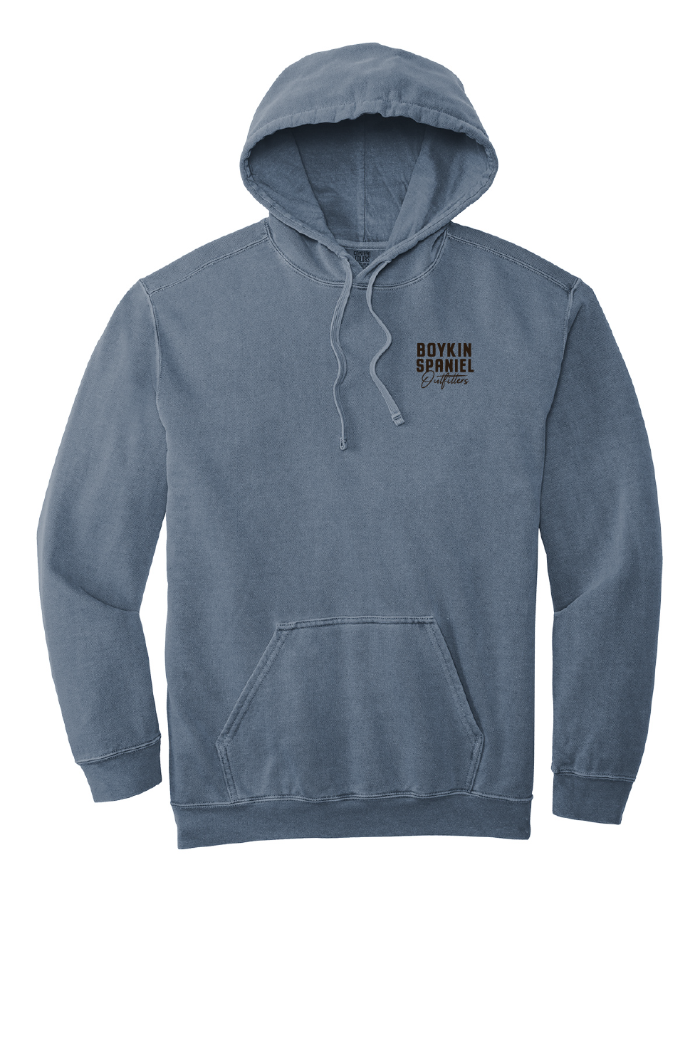 Boykin Spaniel Outfitters is thrilled and honored to offer a collaboration with award-winning master artist, avid sportsman, and dedicated conservationist Jim Killen. Jim's "Top Dog" artwork is featured on this high quality, Comfort Colors hooded sweatshirt in a unique Boykin Spaniel Outfitters design.
